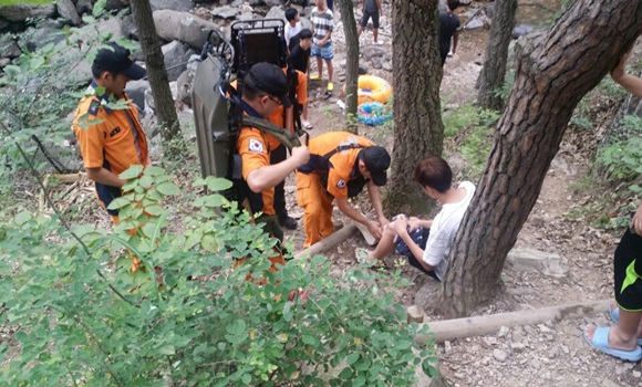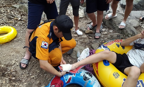 구조대는 현장에 도착해 오른발 발등에 난 상처를 신속히 응급처치한 후 인근병원으로 이송했다. 칠곡소방서 관계자는 “계곡에서 물놀이 할 때 날카로운 바위가 많아 쉽게 다칠 수 있으므로 신발을 반드시 신고 물놀이 할 것”을 당부했다.