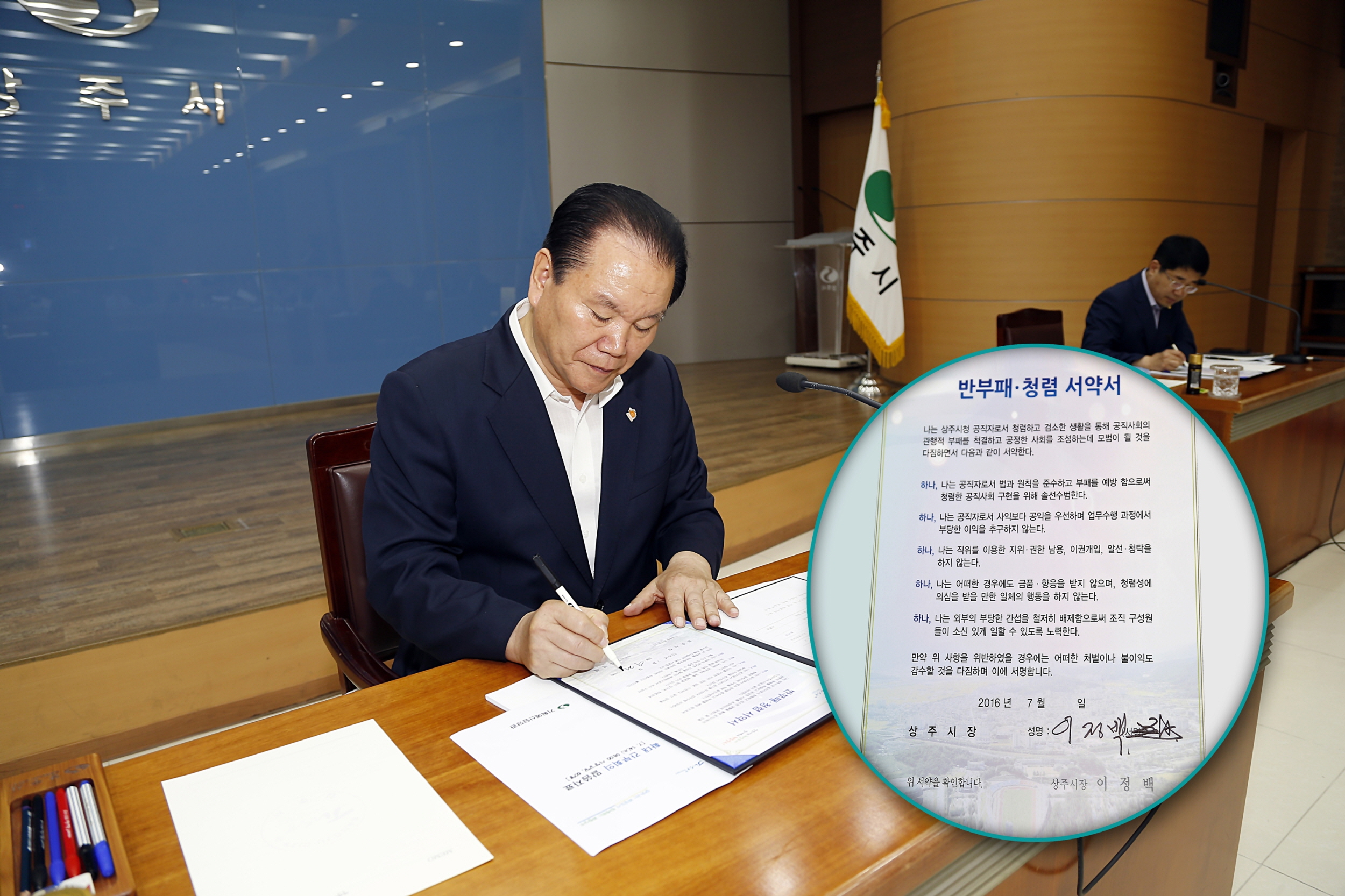 [상주] 상주시는 조직내 청렴문화를 더욱 확산시키고 청렴 실천을 위한 결의를 다지기 위하여 1,300여명의 전 직원을 대상으로 ‘공직자 반부패·청렴 서약’을 실시했다.