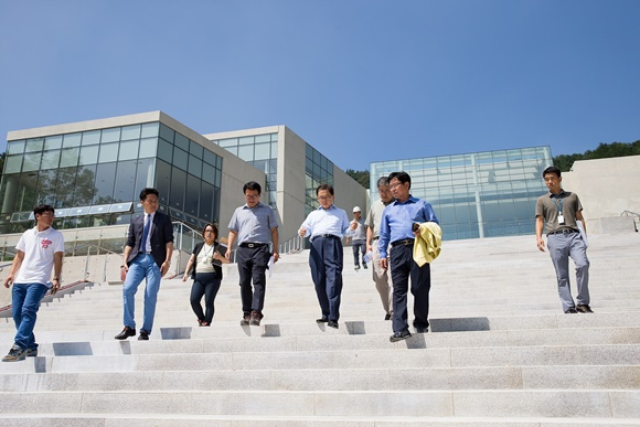 [구미]구미시는 금년말 준공 예정인 산림에코센터 조성공사 현장을 점검을 실시했다. 남유진 구미시장은 8월 12일 공사현장을 방문해 무더위에 구슬땀을 흘리고 있는 현장 직원들을 격려하면서 2017년 개관예정인 산림에코센터 조성공사 마무리에 힘써 줄 것을 당부했다.