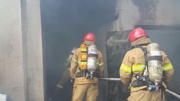[경주] 경주소방서는 8월 15일 14시 17분경 경주시 천북면에 있는 한 과수원 과일보관용 창고에서 화재가 발생해 소방대원이 신속히 출동해 화재진압 및 인명구조활동을 펼쳤다.