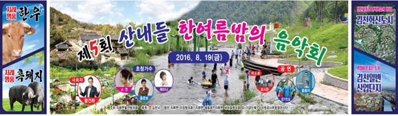 [김천] 김천시는 오는 8월 19일(금) 19시부터 약 3시간 동안 지례면 산내들 공원 야외무대에서 한여름밤 음악회가 열릴 예정이다. 이 음악회는 지례면민이 화합하여 자생적으로 개척한 음악회로 지례면발전협의회에서 주최를 하고 있으며 올해 5회를 맞아 더욱 발전된 음악회로 거듭났다.