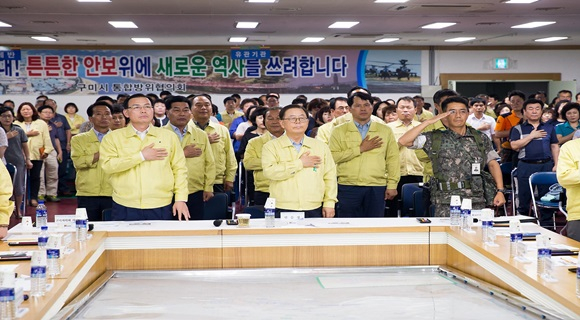 시는 22일 민방위대피소에서 남유진 시장, 김익수 구미시의회 의장, 김정민 제5837부대 1대대장 등 300여명이 참석한 가운데 최초상황보고회를 실시했다.