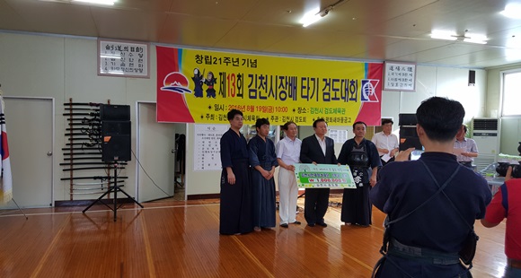 박보생 김천시장은 대회사를 통해 “올해로 13회째를 맞는 검도대회 개최를 진심으로 축하하며, 특히 지역인재양성을 위해 회원들이 십시일반 모은 소중한 사랑을 인재양성재단에 기탁해주어 깊은 감사를 드린다.”고 말했다. |