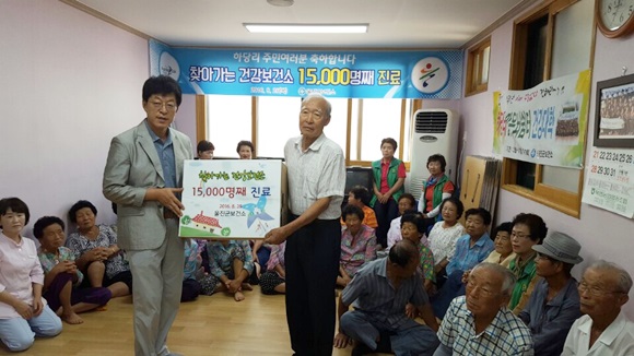 [울진] 울진군은 8월 25일 북면 하당리 마을회관에서 군민과 함께하는 찾아가는 건강보건소 1만5,000명째 진료행사를 가졌다.