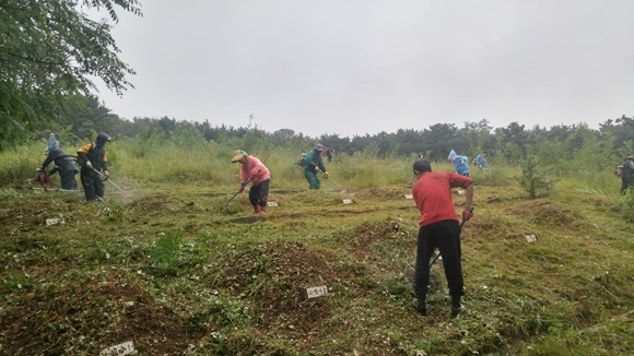 시립공설묘지 벌초작업은 양포동청년회에서 올해로 12년째 맡아 진행해 오고 있으며, 이 날도 무연고 영혼들의 안녕을 기원하는 위령제를 시작으로 1,369기에 대한 벌초작업이 이루어졌다.