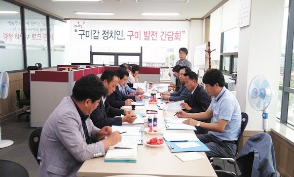이날 간담회에 참석한 시·도의원들은 구미 5공단 지가 인하 방안 강구(김상조 시의원), 신구미대교 명소화 추진(김재상 시의원), 대구권광역전철망 사업 관련해 230억 원이 투입되는 사곡역에 대한 지원 요청(허복 시의원), 원평동 중앙시장 일대 구도심지역 주택재개발사업 추진(정하영 시의원), 낙후된 구미종합터미널 리모델링 및 대기업 유치(김복자 시의원) 등에 대해 국회 차원의 지원과 관심을 요청했다.
