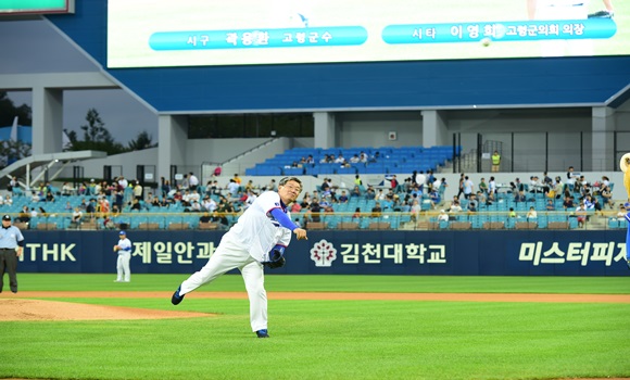 [고령] 고령군은 곽용환 군수가 8월 30일 대구 삼성라이온즈 구단과 협의된 고령군의 날을 맞아 지산동 대가야고분군의 세계유산 등재와 함께 2017 올해의 관광도시 고령의 성공적 조성을 전국에 알리기 위한 시구행사에 참석했다고 밝혔다.