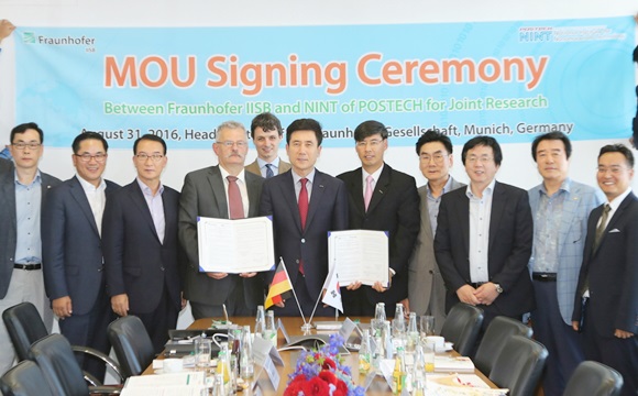 이와 관련해 포스텍 나노융합기술원과 독일 프라운호퍼연구소는 이강덕 포항시장과 나노융합기술원의 신훈규 미래전력소자플랫폼센터장, 프라운호퍼 에를랑겐연구소(Fraunhofer IISB Erlangen)의 안톤 바우어 센터장이 참석한 가운데 MOU를 체결했다.