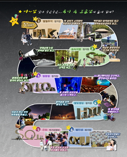 사업 내용은 기반시설 별·생태 체험관 구축(3D영상관·빛 공해 체험장)과 별빛 특화 다기능 버스쉘터 설치, 명품 야영장 정비와 국제기준에 맞는 가로등 교체, 온실카페조성 등이 이루어지고, 여기에 콘텐츠 사업인 신개념 회원관리 시스템 운영, 별빛 인문학 아카데미, 별빛 국화캠핑 축제 등을 결합해 국내최고의 별빛 명소로 새롭게 부상할 수 있도록 추진 될 예정이다.