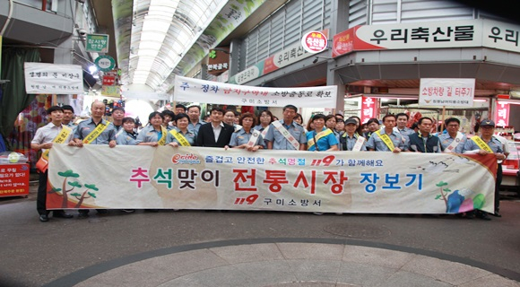 [구미] 구미소방서는 9월 5일 민족 최대의 명절인 추석을 맞이해 구미 전통시장을 찾아 민생안정과 지역상권 활성화를 위한 장보기 행사를 가졌다.