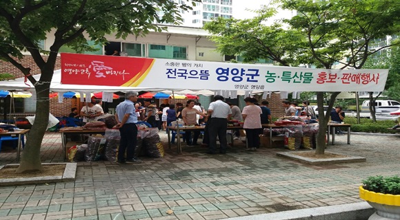 이영우 영양읍장은 “더욱더 좋은 품질의 영양군 우수 농·특산물을 도시 소비자들에게 공급할 수 있도록 농업인 지도에 철저를 기할 것이며, 지속적으로 직판행사를 실시해 농가 소득증대에 기여 할 수 있도록 노력하겠다.”라고 밝혔다. |