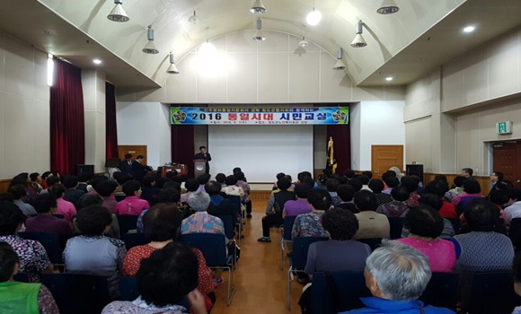 [청도] 민주평화통일자문회의 청도군협의회는 9월 7일 청도노인복지회관에서 군민 200여명을 대상으로 대북정책 현안에 대한 정보제공을 통한 건전한 지역 통일담론 형성과 현 정부의 대북 정책에 대한 국민적 공감대를 확산하기 위해 ‘2016년 통일시대 시민교실’을 개최했다.