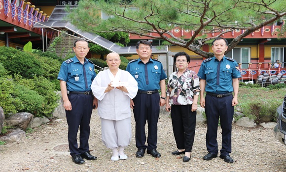 [성주] 성주경찰서는 9월 7일 추석명절을 맞아 사회적으로 소외받는 지역내 복지시설 입소 어르신들을 찾아 뵙고 위문하는 행사를 가졌다. 이날 위문은 선남면 소재 대흥사와 수륜면 실로암요양원 2개 소를 순차 방문하는 형식으로 각 시설 대표들을 면담하고 지역현안 및 경찰에게 바라는 지역민심을 들음과 동시에 시설 입소 어르신들에게 세제 등 위문품을 전달하며 어르신들의 건강과 안녕을 기원했다.