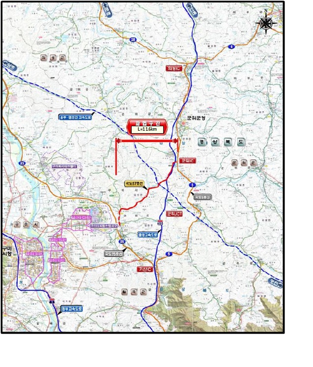 [군위] 군위군은 구미~군위IC간 국도 67호선 개량사업을 추진한다고 밝혔다. 구미~군위IC 구간은 급경사 및 급커브로 인한 차량 통행의 어려움은 물론 노폭이 협소해 교통사고 발생 위험이 높은 도로로 지역 주민 및 도로 이용자의 시설개량 요구가 이어져 왔다.