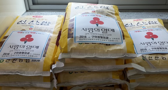 노상진 원평1동장은 “매번 명절 때 마다 잊지 않고 나눔을 실천하는 구미정형외과 원장에게 감사드리며, 앞으로도 구미시 발전과 이웃을 향한 온정이 넘치는 사회를 만드는데 관심을 가져 주기를 바란다.”고 말했다. 이번에 기탁한 쌀은 명절 전 독거가구 등 저소득층에 배부될 예정이다. |