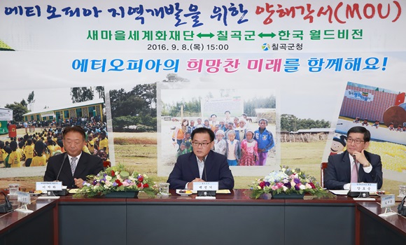 백선기 칠곡군수는 “칠곡군·새마을세계화재단·한국 월드비전이 에티오피아에 실질적인 도움을 주기 위한 토대가 마련됐으며, 민·관이 함께 힘을 모은다면 주민의식 개혁과 빈곤퇴치에도 도움이 될 것으로 기대된다."고 말했다. |