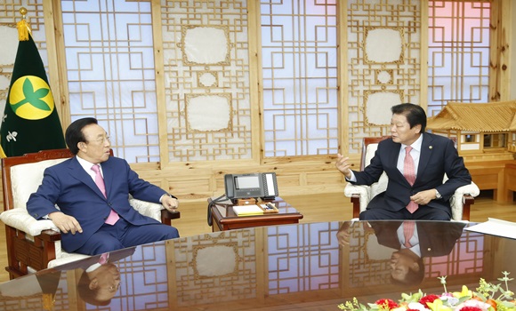 [경북] 경상북도의회 김응규 의장은 9월 12일 김관용 경북도지사를 면담하고, 정부의 일관성 없는 사드정책에 따른 김천시민들의 절박한 목소리에 귀기울여 줄 것과 이와 관련한 도내 지역간의 갈등 해소에 도지사가 적극 나서 줄 것을 요청했다.