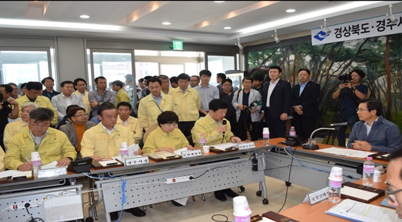경주시 피해상황에 대해 최양식 경주시장은 “특별한 피해는 없으나 역사도시로 한옥지구에 기와, 용마루 등 시 전역에 소규모 피해가 많이 발생했으며, 문화재, 저수지, 도로, 교량 등은 관계기관과 합동 정밀점검을 하고 있다.”며, 정상회복 등 빠른 복구 등을 위해 특별응급지원금 지원 건의 등 정부의 특별한 관심과 협조를 건의했다.