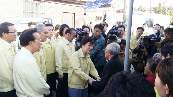 현장에 함께한 최양식 경주시장은 “이번 지진으로 한옥 지붕 피해가 가장 많다며 피해가구에 실질적인 보상이 될 수 있도록 한옥 피해 복구비 70%를 지원해 줄 것”을 건의하자 박 대통령은 적극적으로 검토하겠다고 말했다.