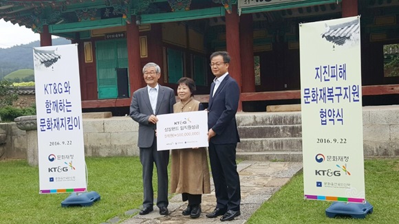 한편 백복인 KT&G 사장은 "천년고도 경주의 문화재 피해 소식에 직원들 사이에서 오랜 역사를 가진 우리 회사가 솔선수범해 복구를 도와야한다는 의견이 모아져 긴급 지원을 하기로 했다."고 밝혔다.