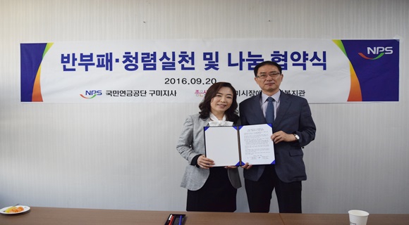 [구미] 구미시장애인종합복지관과 국민연금관리공단 구미지사는 9월 20일 구미시장애인종합복지관에서 반부패·청렴실천 및 나눔 협약 MOU를 체결했다.