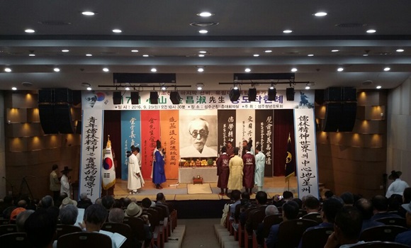 [성주] 성주 청년유도회는 지난 9월 25일 성주군청 대강당에서 제7회 심산 김창숙 선생 숭모제를 개최했다. 이번 숭모작헌례는 초헌관 문태갑 전 국회의원, 아헌관 도원회 재경성주문화후원회장, 종헌관 오병두 서울청년유도회장이 참여하고 김정수 성주청년유도회 회원의 집례로 시연됐다.