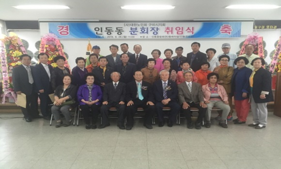 [구미] 인동동은 9월 26일 인동종합회관 2층 회의실에서 도·시의원, (사)대한노인회 구미시지회 박두호지회장, 각 경로당 회장 및 기관·단체장 등 60여명이 참석한 가운데 (사)대한노인회 구미시지회 인동동분회장 취임식을 가졌다.