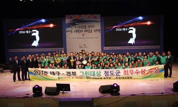 [청도] 청도군은 9월 30일 경북도청 동락관에서 열린 2016 대구·경북 그랜드 포럼에서 그린대상을 수상했다.