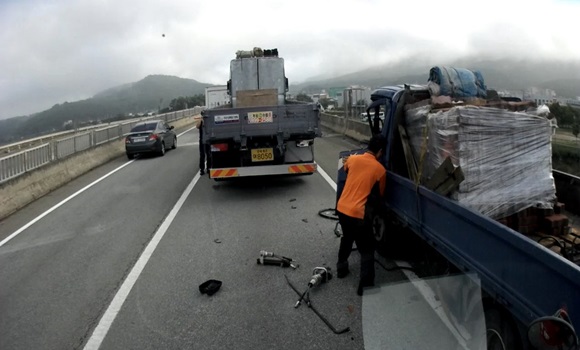 현장상황은 중형화물차 후방에 소형화물차 운전석이 추돌한 사고로 차량 내 운전자가 끼어 있는 것을 구조대원들이 유압장비 등을 이용해 안전하게 구조했다. |