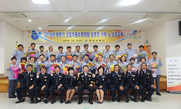 [의성] 의성소방서는 2016년 하반기 신규의용소방대원 29명에 대한 임명장 수여 및 의용소방대원이 필요한 기본 법령 및 소양교육을 본서 3층 대회의실에서 10월 5일 실시했다.