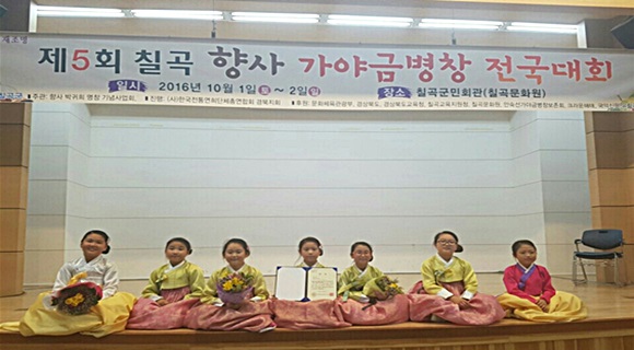 제5회 칠곡 향사 가야금병창 전국대회는 칠곡군이 향사 박귀희 명창의 업적을 기리고 가야금병창의 저변확대를 위해 매년 개최하고 있으며, 본선에 진출한 7명의 학생들은 ‘너영나영, 봄 노래’, ‘옹헤야’를 가야금 연주와 함께 흥겹게 불러 객석의 호응을 이끌어 내 대상으로 이어졌다.