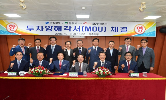 이번 MOU체결은 그동안 영주시에서 투자유치를 위해 노력을 기울인 결과로 SK머티리얼즈의 공장설비 455억원, 전력 등 기반시설 55억원총 510억원의 추가투자와 31명의 신규인력 고용으로 지역경제 활성화 및 새로운 일자리 창출에 청신호를 켰다.