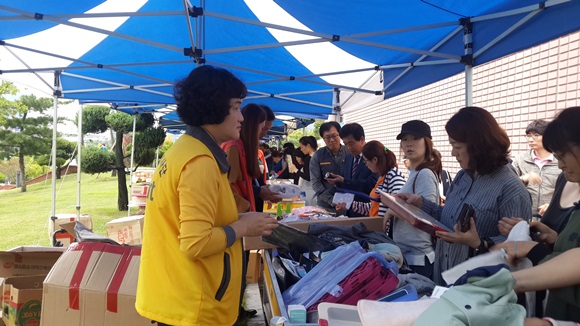 이날 행사는 이마트에서 기증한 의류, 잡화류, 유아용품, 생활용품 등 5,000여점의 다양한 물품을 최대90%의 할인된 가격으로 이마트 직원 및 주부봉사단, 대학생 자원봉사자들이 판매했으며, 바자회를 통한 수익금(3백8만원)은 오는 22일 실내체육관 어귀마당에서 개최되는 기부데이 행사시 경산사랑나눔사업에 기부해 지역의 저소득층을 위해서 사용될 계획이다.