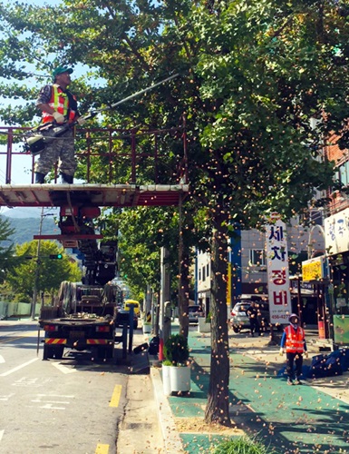 또한, 자생단체 등을 활용해 가로수에 피해가 발생되는 일이 없도록 사전 교육을 시킨 후 열매를 채취하여 자체 처분하거나 노인정 및 양로원 등에 무료 공급토록 권장하고 있다.