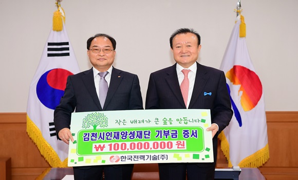 한편, 2015년 8월에 김천으로 본사를 이전한 한국전력기술(주)은 ‘고객에 기술을 이웃에 나눔과 사랑을’ 이라는 슬로건 아래 인간, 환경, 기술의 융화로 고객만족·인간존중·기술중시 실천을 통한 최고의 에너지 기술 창조, 원전 종합설계와 원자로계통 설계기술 보유, 미래 에너지 시장을 주도할 친환경에너지, 고속철도와 신공항 등 다양한 부문으로 영역을 넓혀가고 있는 글로벌 기업으로 이번에 기탁한 1억원을 포함해 지금까지 총 2회에 걸쳐 2억원의 인재양성 장학기금 기탁, 김천지역 농촌일손돕기 봉사활동 및 지역농산물 이용, 지역주민을 위한 사랑의 쌀 500포 기증, 한국전력기술(주) 사옥 내 열린도서관을 김천시민에게 개방하는 등 지역사회를 위하여 다양한 사회공헌활동을 펼쳐오고 있을 뿐만 아니라 김천시민과 하나 되는 다양한 정책을 펼치고 있다.