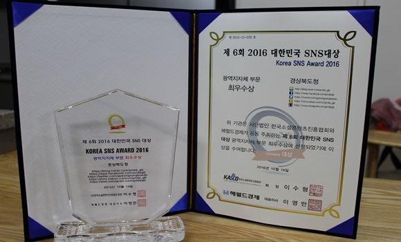 경북 ‘2016 제6회 SNS대상’ 광역지자체 부문 최우수상 수상