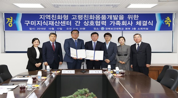 구미지식재산센터와 협약을 맺은 경북보건대학교는 고령친화용품개발사업을 위해 2014년부터 교육부 특성화사업의 비즈니스모델로 간호학과 등 4개 학과가 공동 참여하는 ‘THE 푸름’ 창업연합동아리를 결성하고 경상북도 및 국민건강보험공단 대구지역본부 등 산학관 8개 기관과 MOU를 체결한 바 있다.