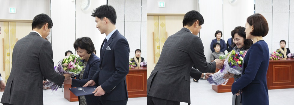 신규공무원에게 임용장수여, 부모님께 꽃다발 증정, 기념촬영, 군수간담회 순으로 진행 된 이날 임용식은 신규공무원들의 자긍심을 높이고 그동안 성원해주신 부모님께 감사의 마음을 전하는 뜻 깊은 자리로 마련됐다.