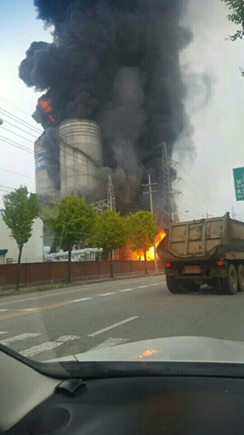 10월 19일 오전 9시 21분쯤 경북 칠곡군 석적읍 중리 구미국가산업단지 3단지 내 스타케미칼 공장에서 폭발과 함께 불이나 소방당국이 출동했다.