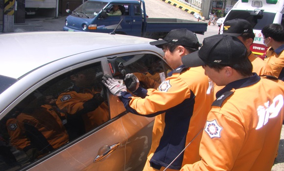 김천소방서 출동대가 사고현장에 도착한바, 차량 내 어린아이(1세, 여)가 갇혀있고 밖에서 문을 열지 못하고 있는 상황이었다. 이에 차량용 문개방 기구를 이용해 신속하고 안전하게 구조했다. |