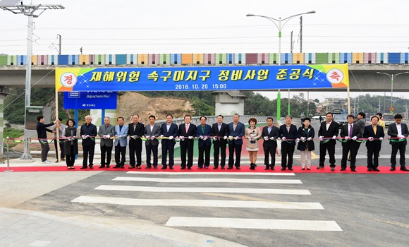 [김천] 김천시는 10월 20일 모암동 경부고속도로 김천교 밑 가축시장 옆에서 지역주민 300여명이 참석한 가운데 재해위험 속구미지구 정비사업 준공식을 가졌다.