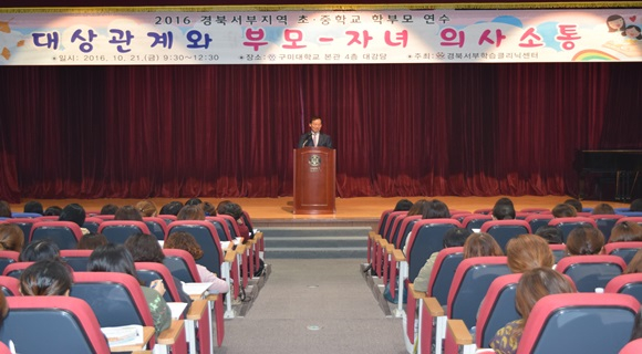 [구미] 구미교육지원청 경북서부학습클리닉센터는 10월 21일 구미대학교 4층 대강당에서 경북서부지역(구미, 김천, 칠곡, 상주, 성주, 군위) 학부모 150여명을 대상으로 서부학습클리닉센터 학부모 연수를 개최했다.