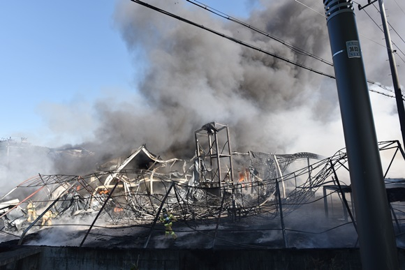 [경산] 11월 2일 오후 1시50분께 경북 경산시 자인면 옥천리 소재 스펀지 생산공장(연면적 1,495.2제곱미터)에서 폭발로 추정되는 화재가 발생했다.