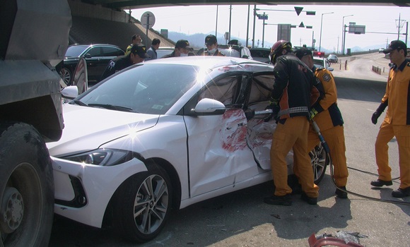 김천소방서 출동대가 사고현장에 도착했을 때 트럭과 승용차가 추돌한 상황으로 유압 전개기 및 절단기 등을 활용해 경상자 1명(61세,여)을 안전하게 구조했으며, 현장에서 응급처치를 실시한 후 인근 병원으로 신속히 이송했다. |