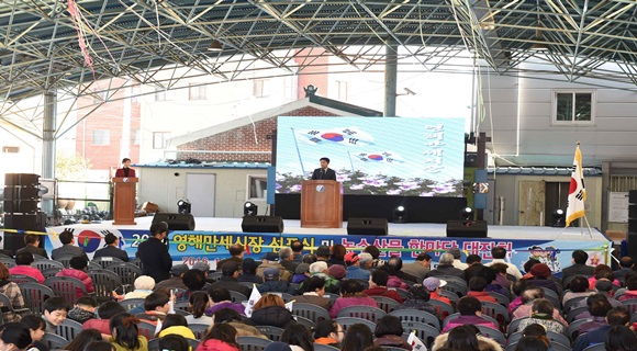 [영덕] 영덕군은 지난 11월 영해시장에서 군내 보훈단체, 주민, 시장방문객, 학생, 유관기관단체 등 1,000여명이 참석한 가운데 영해만세시장 선포 및 만세장터 재현 행사를 개최했다.