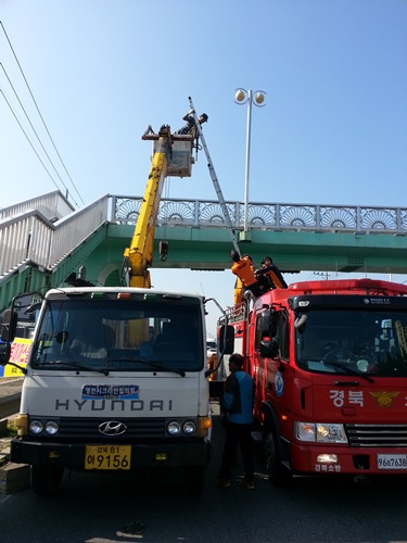 [영천] 영천소방서는 지난 11월 5일 오전 금호읍 소재 도로 상에서 시설물 점검 중인 크레인 차량이 고장 나면서 요구조자가 크레인 바스켓에 고립되는 사고가 발생했다고 밝혔다.