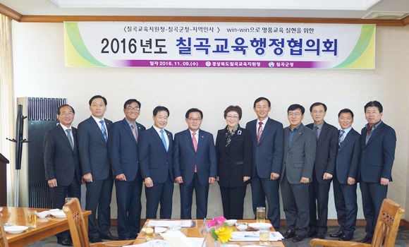 [칠곡] 경상북도칠곡교육지원청과 칠곡군은 11월 9일 교육지원청과 지방자치단체 간 긴밀한 상호 협력 강화 및 칠곡교육 발전을 협의하기 위해 ‘2016년도 칠곡교육행정협의회’를 개최했다.