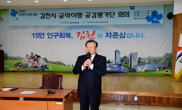 [김천] 박보생 김천시장의 민선6기 공약이행률을 평가하고 재설정 또는 조정이 필요한 공약을 변경하기 위해 11월 8일 김천시청에서 41명의 김천시민들로 구성된 2016 공약이행 공감평가단(이하 평가단)이 발족됐다.
