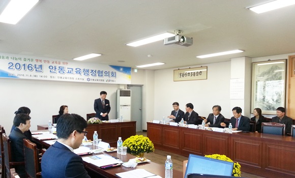[안동] 경상북도안동교육지원청은 11월 8일 안동교육지원청 2층 소회의실에서 지역교육발전과 상호협력 강화를 통해 ‘배움과 나눔이 즐거운 행복 안동교육’ 실현을 위한 2016년 안동교육행정협의회를 개최했다.