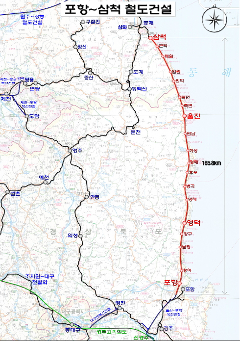포항∼삼척 철도는 경상북도 포항을 출발해 영덕․울진을 거쳐 강원도 삼척에 이르는 166.3km 길이의 단선철도로, 현재 포항∼영덕 1단계 구간(44.1km)과 영덕∼삼척 2단계 구간(122.2km)으로 나뉘어 사업이 진행되고 있다.